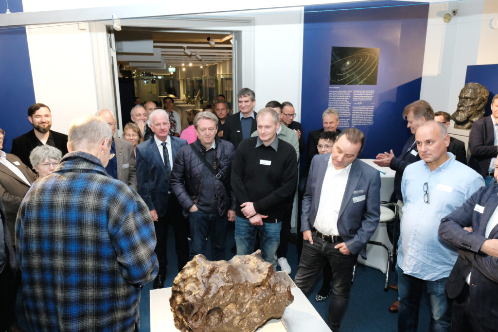 Die Gäste des DGZfP-Jahresempfangs 2025 bestaunen bei der Museumsführung Berlins größten Meteoriten.