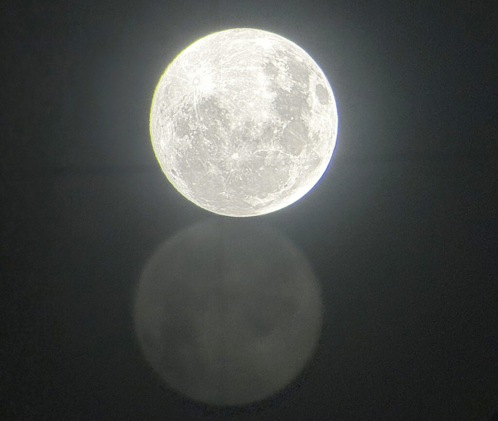 Der Mond zum Greifen nach: Ein Blick durch das Cassegrain-Fernrohr, festgehalten mit dem Smartphone des Teilnehmers Heiko Witte.