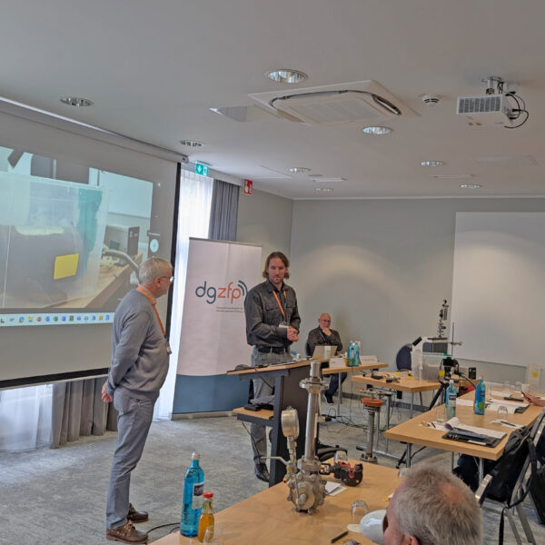 Der zweite Vortragsblock über Methoden der Dichtheitsprüfung spannte den Bogen über Ultraschallprüfungen – einerseits im Wasserbad, andererseits an Luft bei der Instandhaltung von Kraftwerken – zu den Schnüffelverfahren mit Prüfgasen. Grundlagenorientierte Vergleiche von unterschiedlichen quantitativen Methoden beim Schnüffeln wurden durch die Vorstellung maschineller Hilfestellungen beim lokalisierenden Schnüffeln von Prüfgasen ergänzt.