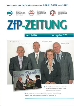Mit dem fünfmal jährlich erscheinenden ZfP-Magazin informieren wir unsere Mitglieder über aktuelle Themen der Zerstörungsfreien Prüfung, laufende Projekte und Veranstaltungen der DGZfP, ÖGfZP und SGZP.