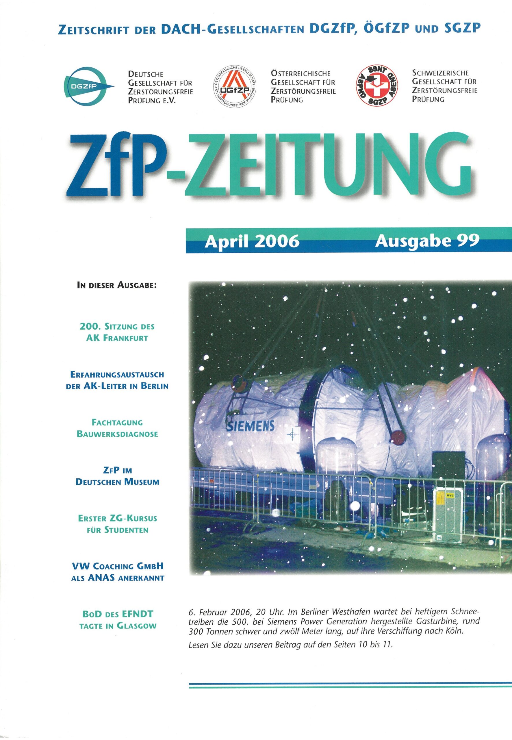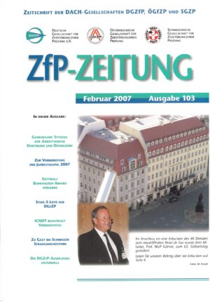 Mit dem fünfmal jährlich erscheinenden ZfP-Magazin informieren wir unsere Mitglieder über aktuelle Themen der Zerstörungsfreien Prüfung, laufende Projekte und Veranstaltungen der DGZfP, ÖGfZP und SGZP.