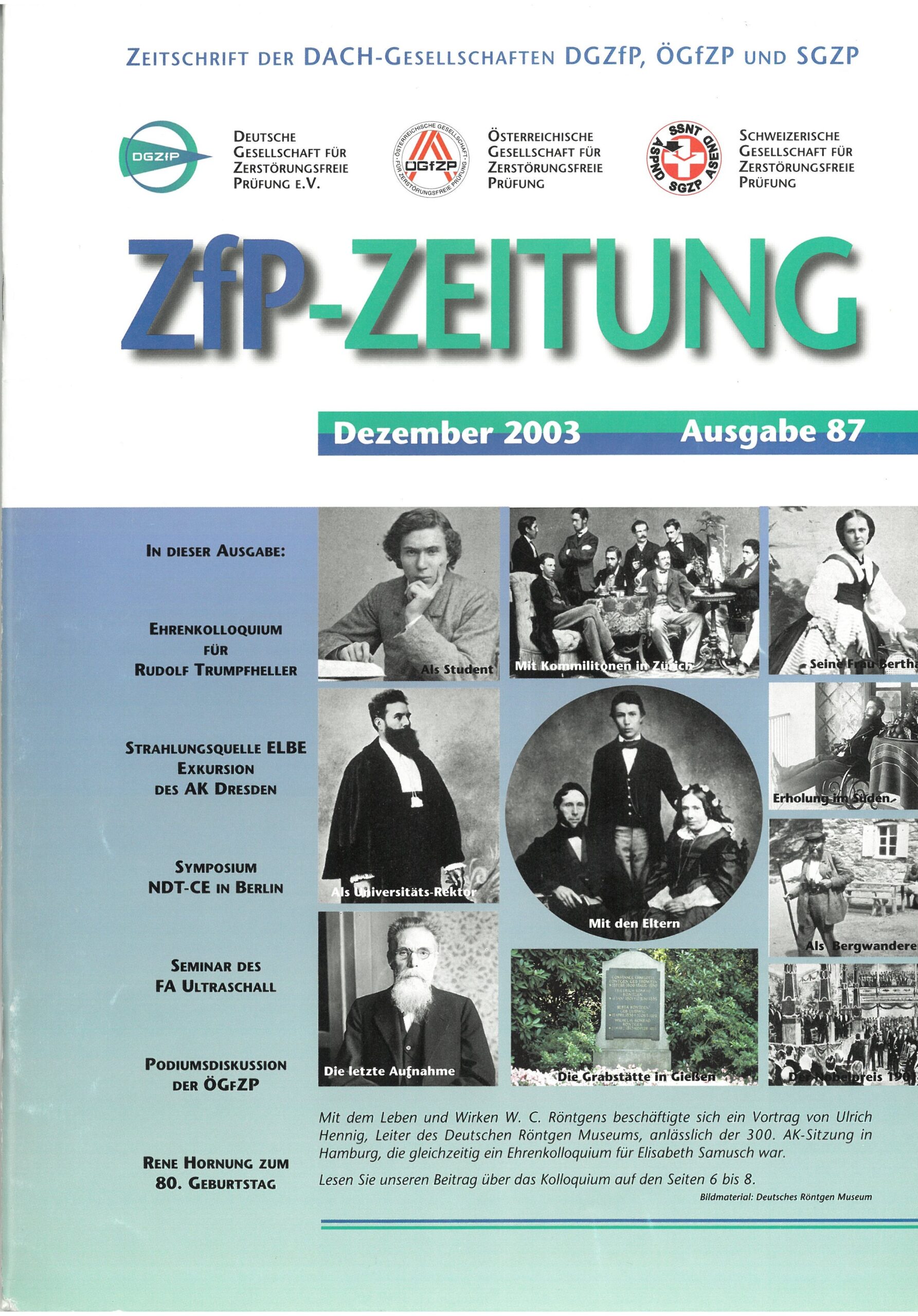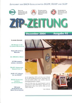 Mit dem fünfmal jährlich erscheinenden ZfP-Magazin informieren wir unsere Mitglieder über aktuelle Themen der Zerstörungsfreien Prüfung, laufende Projekte und Veranstaltungen der DGZfP, ÖGfZP und SGZP.